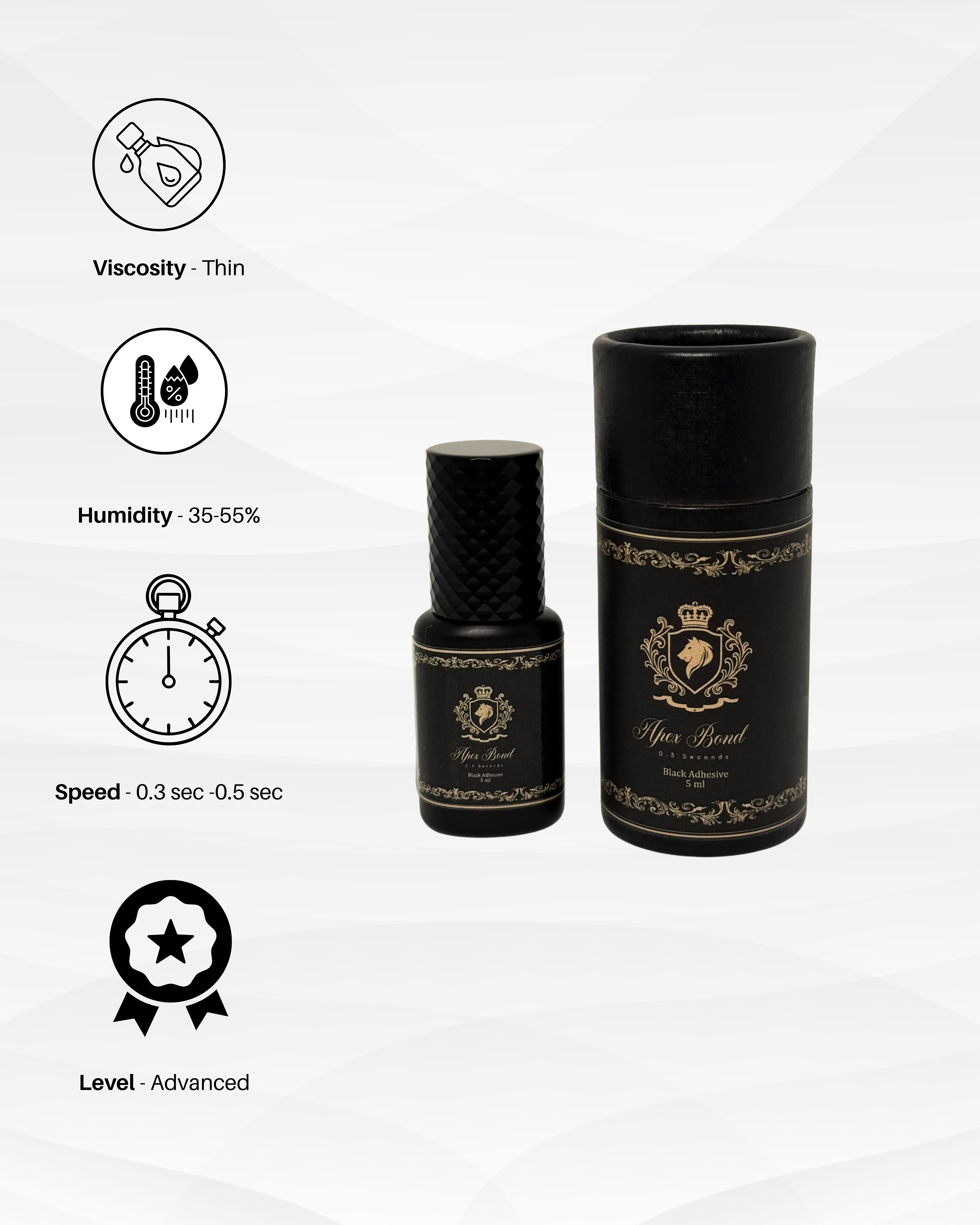 Apex Body 0.3 Second Lash Adhesive is a high-performance professional adhesive designed for artists who work fast and demand maximum retention.